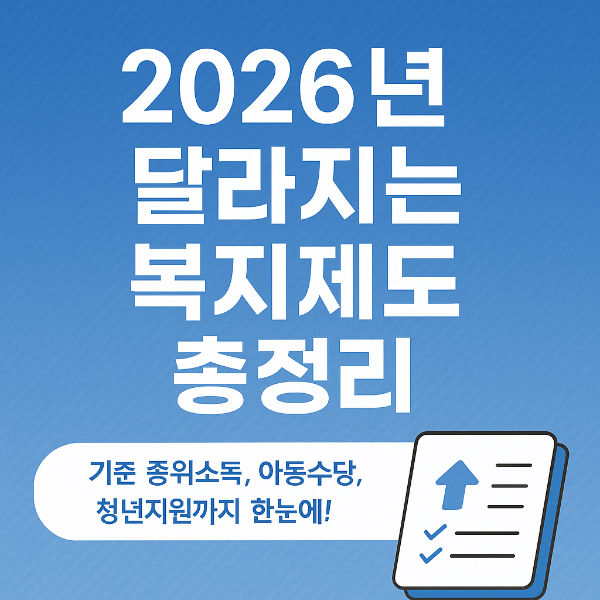 복지는 “눈에 띄는 사람”이 아니라, “찾아보는 사람”에게 먼저 도착합니다. 2026년에 달라지는 복지제도를 미리 알고 움직여, 당신과 가족에게 들어올 수 있는 혜택들을 한 건도 놓치지 마세요.